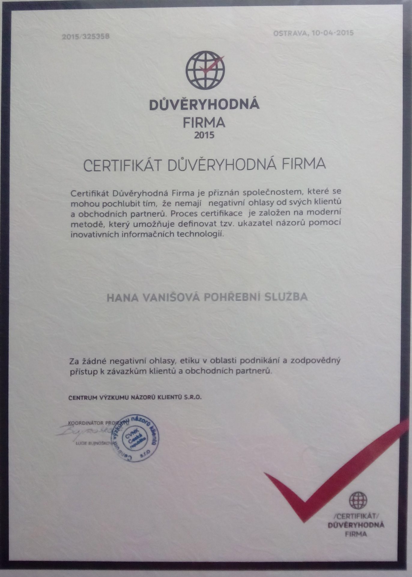 Naše firma zajišťuje služby v pohřebnictví již od roku 1992.